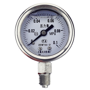 规格: Y-60 测量范围:-0.1~0.5MPa,精度:1.6级,连接尺寸:1/4NPT,轴向 1只