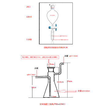 规格: 100mL四氟分液漏斗+插管三角烧瓶750mL