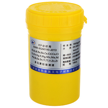 19种元素混合标液规格: Al, As, Ba, Be, Bi, Cd, Co, Cr, Cu, Fe, Mg, Mn, Ni, Sb, Sn, Ti, V, Zn, Zr 100µg/mL