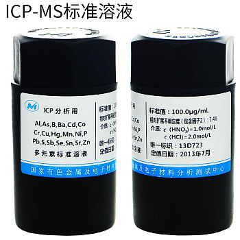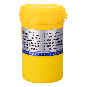 32种元素混合标液规格: Ag, Al, As, B, Ba, Be, Bi, Ca, Cd, Co, Cr, Cu, Fe, K, Li, Mg, Mn, Mo, Na, Ni, P, Pb, Sb, Se, Si, Sn, Sr, Ti, Tl, V, Zn, Zr 100µg/mL