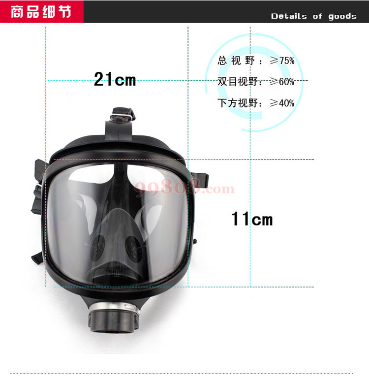 面具的镜片保明采用阻水罩结构,可保证面具在用时镜片保明性能良好。