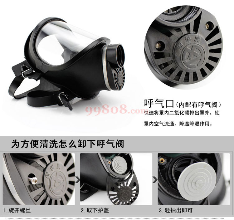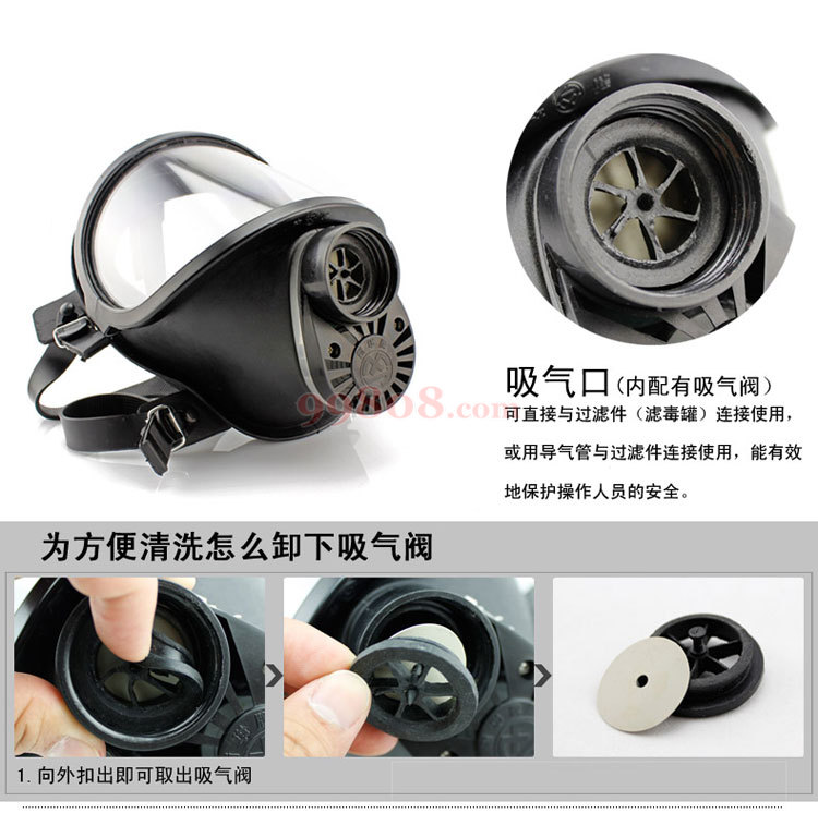 3.2 面具使用后应擦尽各部位汗水及脏物,尤其是镜片、呼气活门、吸气活门要保持清洁,必要时可用水冲洗面罩部位,对滤毒罐部分也要擦干净。