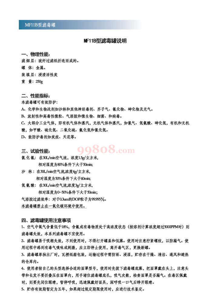 2.6贮存寿命:面具滤毒罐在规定条件下,贮存期为5年。