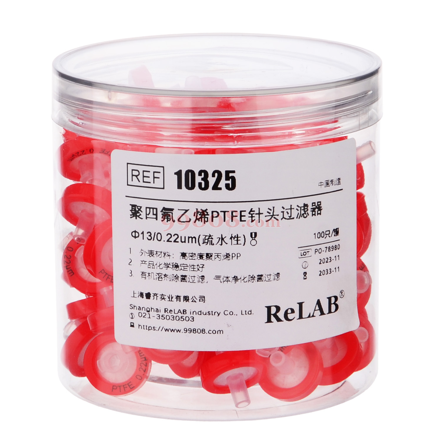ReLAB | 聚四氟乙烯PTFE一次性针头过滤器(疏水性) | Ф13/0.22um