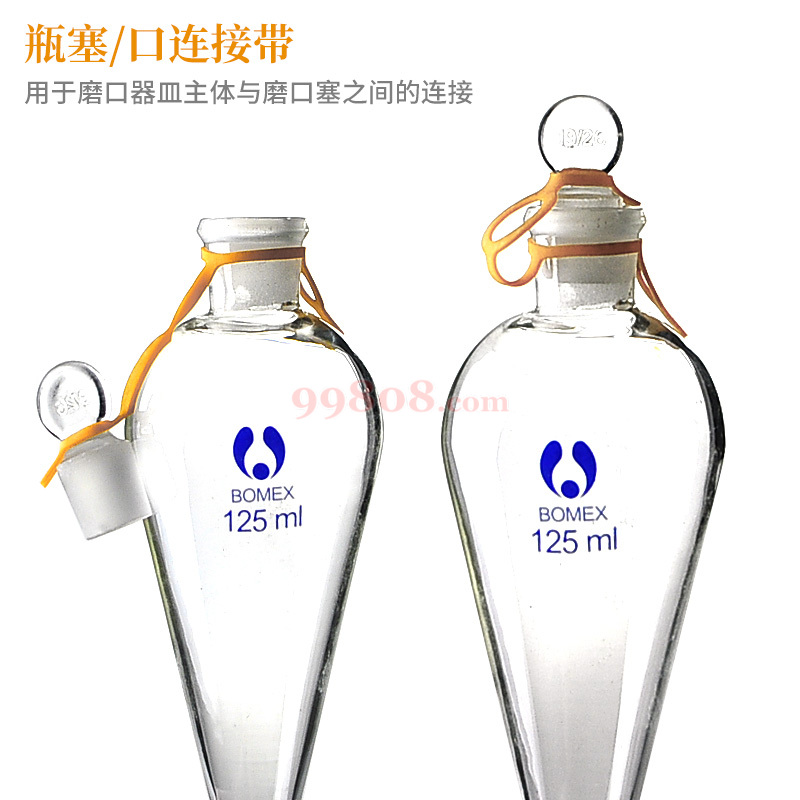 用于磨口器皿主体与磨口塞之间的连接,以确保磨口塞与器物之间的配套。天然橡胶制成,拥有超强弹性,可拉伸至本体长度的3-4倍。