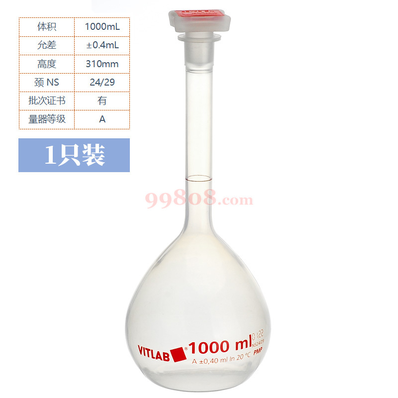 | 10873当前 | 1000ml ±0.4ml 带PP材质NS塞子 | 1只/盒 | 67604 | VITLAB | 起售:1 批量:1 | 只 | ¥217.00/只 ¥264.00 | 当前项目 | |