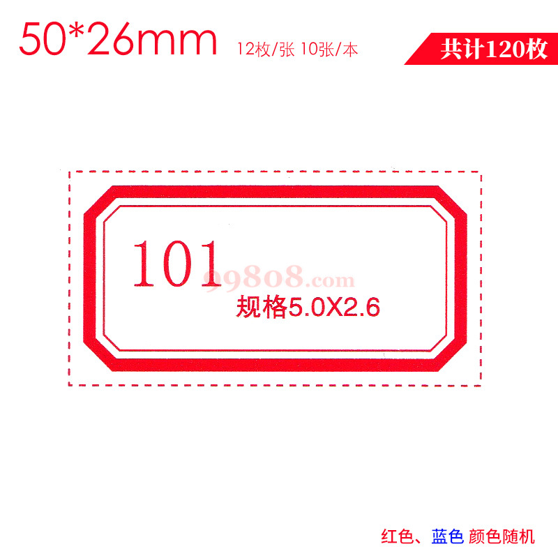 | 522120 | 109:52*25mm | 12枚/张 10张/本 20本/包 | - | 其它/Others | 起售:20 批量:20 | 本 | ¥2.30/本 | ||