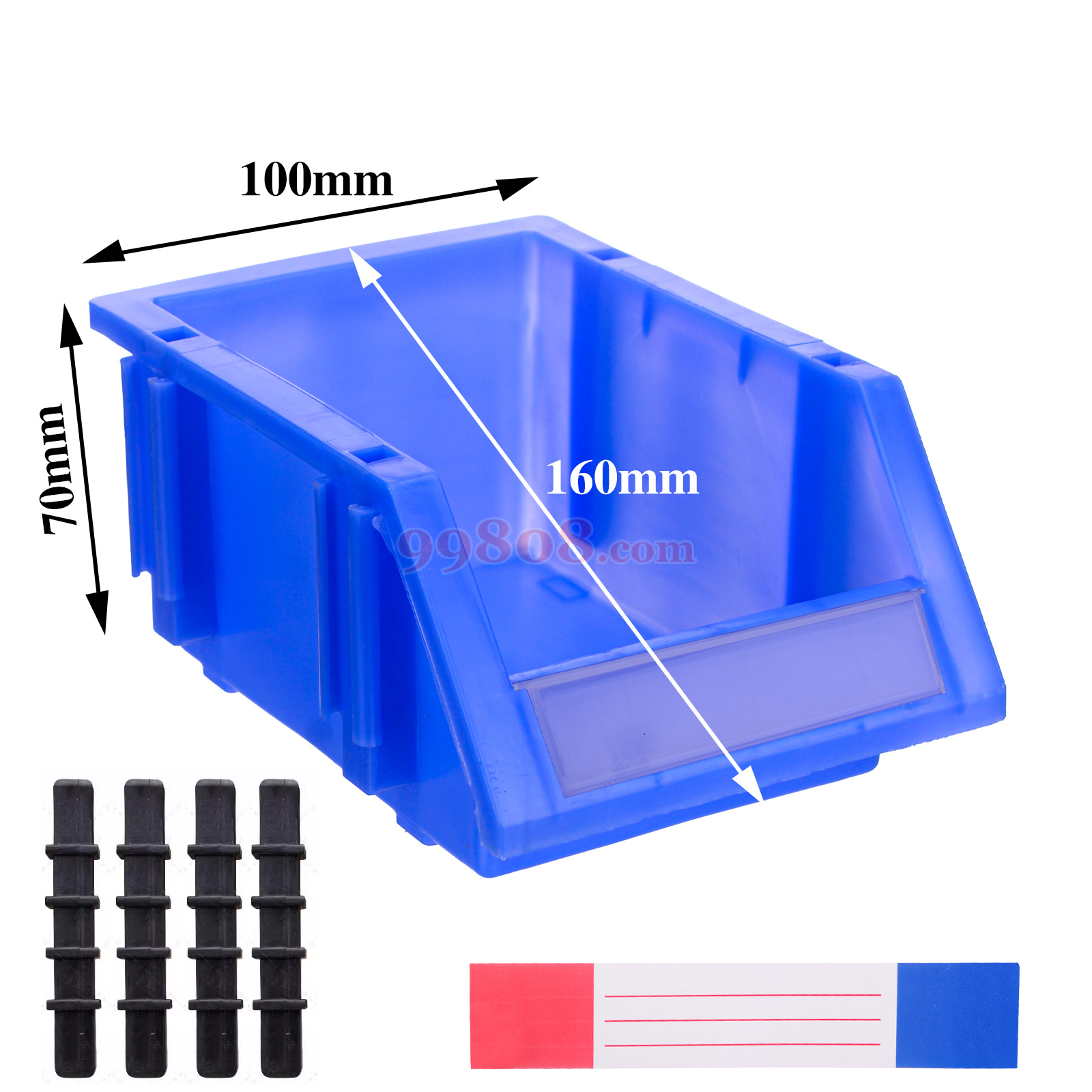加强型组立式塑料零件盒标准配置由零件盒一个,四色标签纸一张,透明标签盖一个,四根立柱组成。当零件盒组立成两层时,则没个零件盒只配置两根立柱即可。