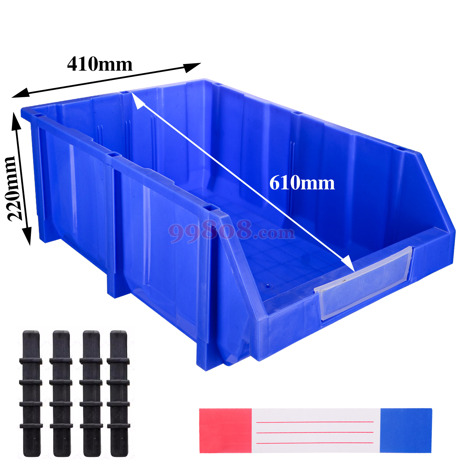 加强型组立式塑料零件盒标准配置由零件盒一个,四色标签纸一张,透明标签盖一个,四根立柱组成。当零件盒组立成两层时,则没个零件盒只配置两根立柱即可。