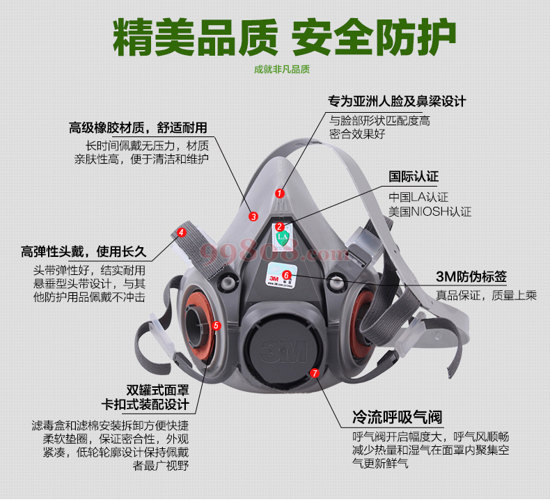 3M | 半面型防护面具 双滤 | 半面型防护面具(6100 小号)橡胶质地