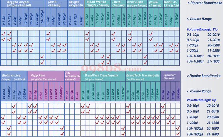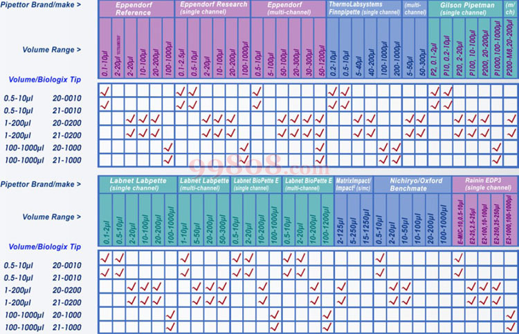 Biologix 吸头与移液器的适配性: