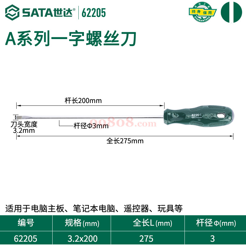 | 13087当前 | 3.2*200mm/62205 | - | 62205 | SATA/世达 | 起售:1 批量:1 | 把 | ¥19.20/把 | 当前项目 | |
