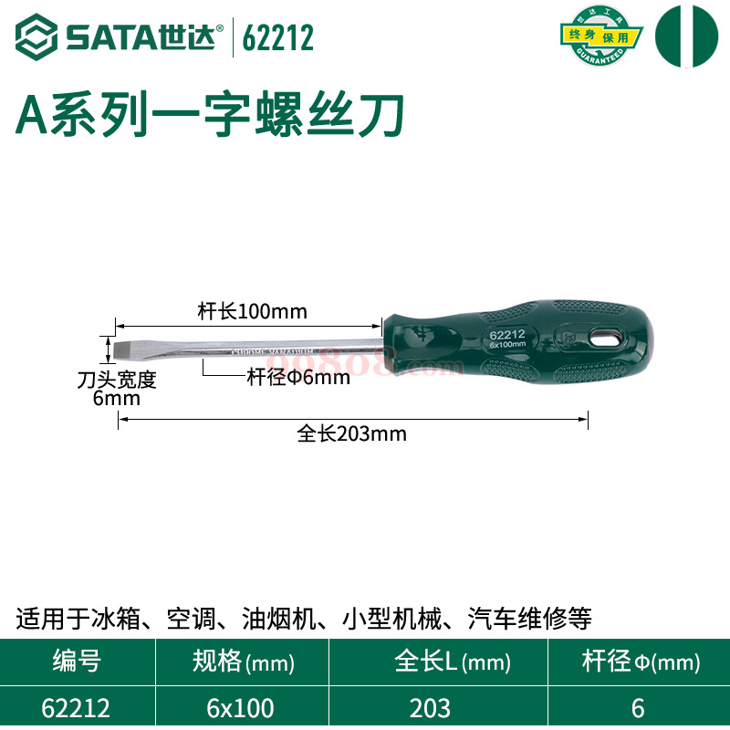 | 13095当前 | 6*100mm/62212 | - | 62212 | SATA/世达 | 起售:1 批量:1 | 把 | ¥23.00/把 | 当前项目 | |