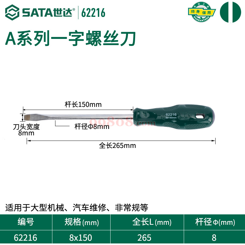 | 13100当前 | 8*150mm/62216 | - | 62216 | SATA/世达 | 起售:1 批量:1 | 把 | ¥33.20/把 | 当前项目 | |