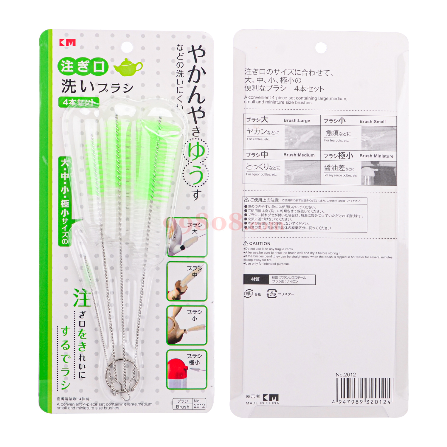 出口产品,不掉毛,从极细到较粗,共4件一套,配金属圈,方便悬挂使用,可以用于小口弯曲清洗。