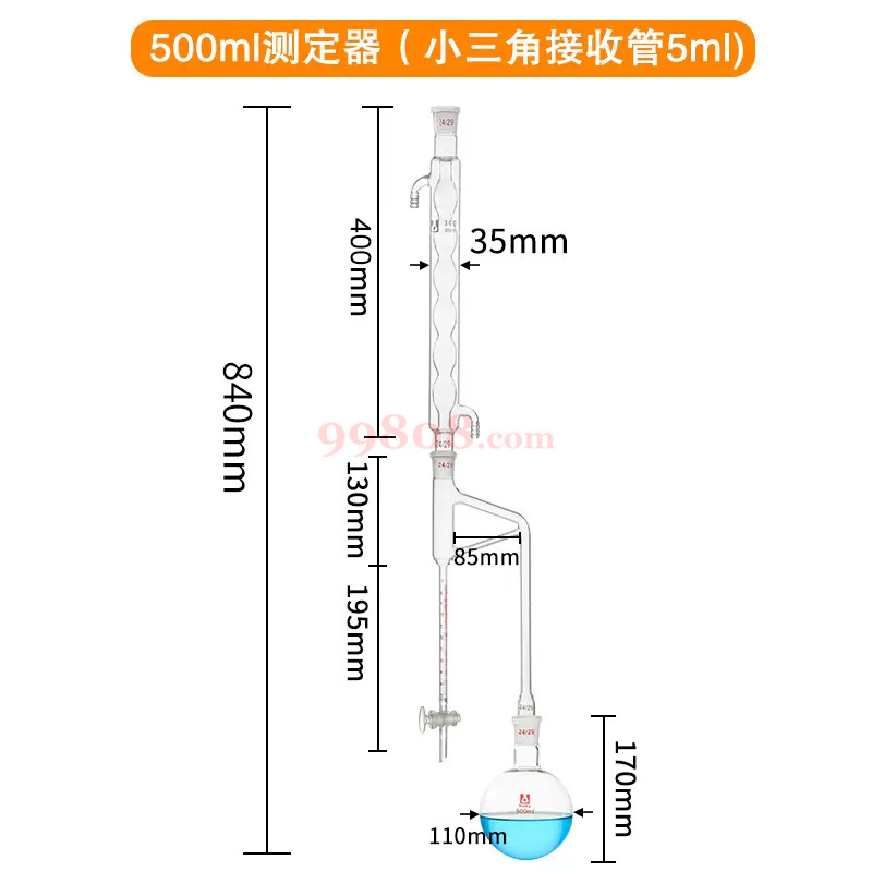 ReLAB | 磨口挥发油测定器 | 套装4:400/24*24球冷 中节 500mL/24单口 小三角