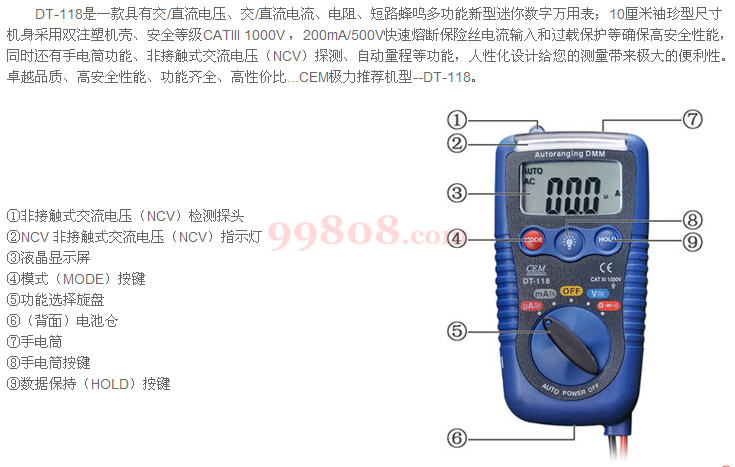 | 功能 | Γ大量程 | 误差 | DT-912N | DT-118 |