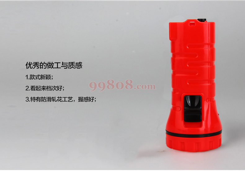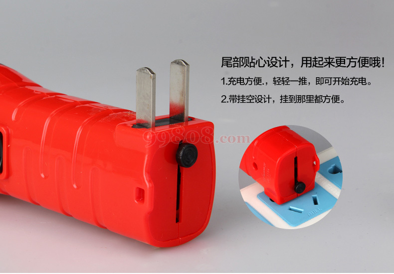 3颗高亮LED,电池容量350mAh,推进式开关,照明时间12H,可充电。