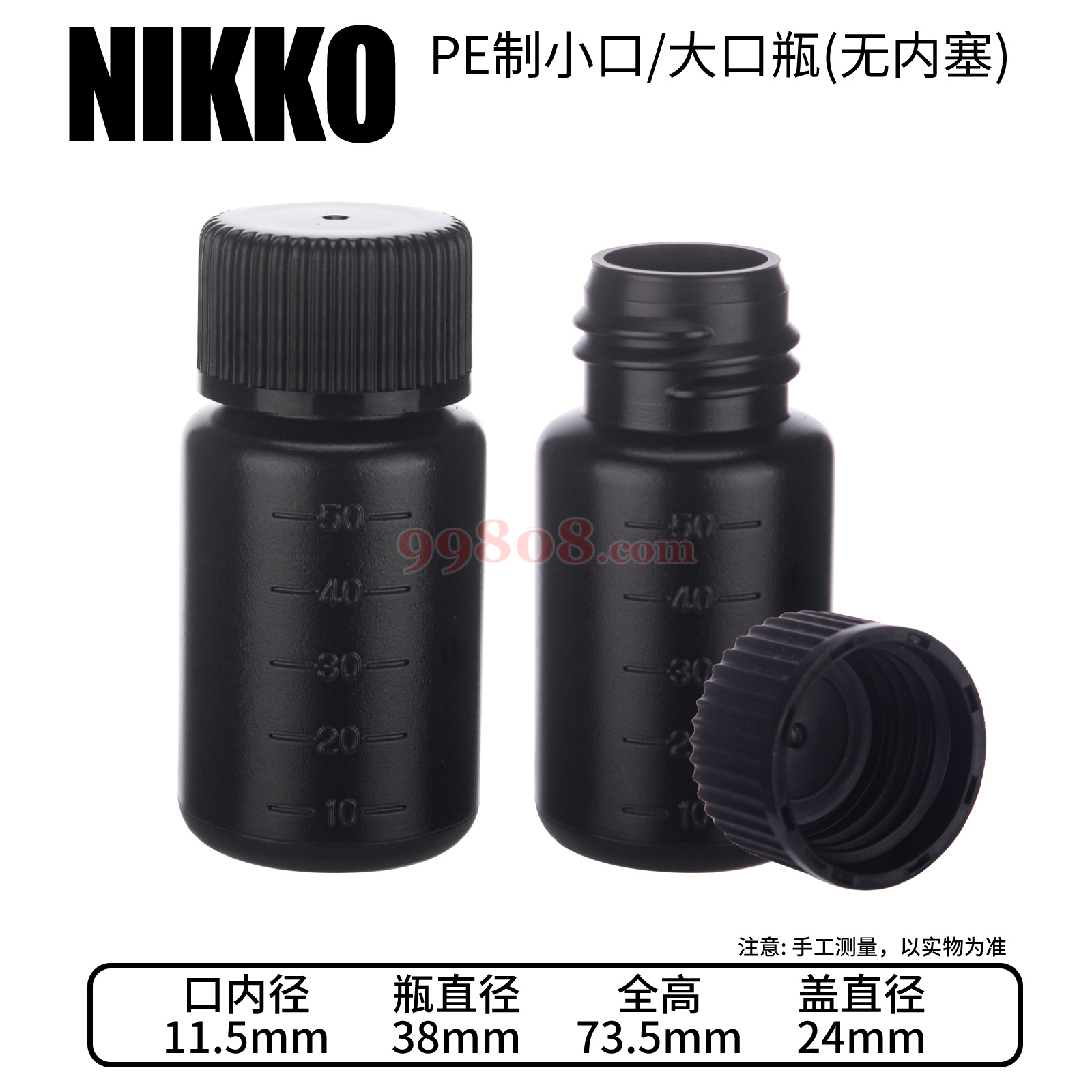 黑色小口防紫外线瓶(PE) | 小口50mL | 11.5 | 38 | 73.5 | 15-2011-55 | 13316 |