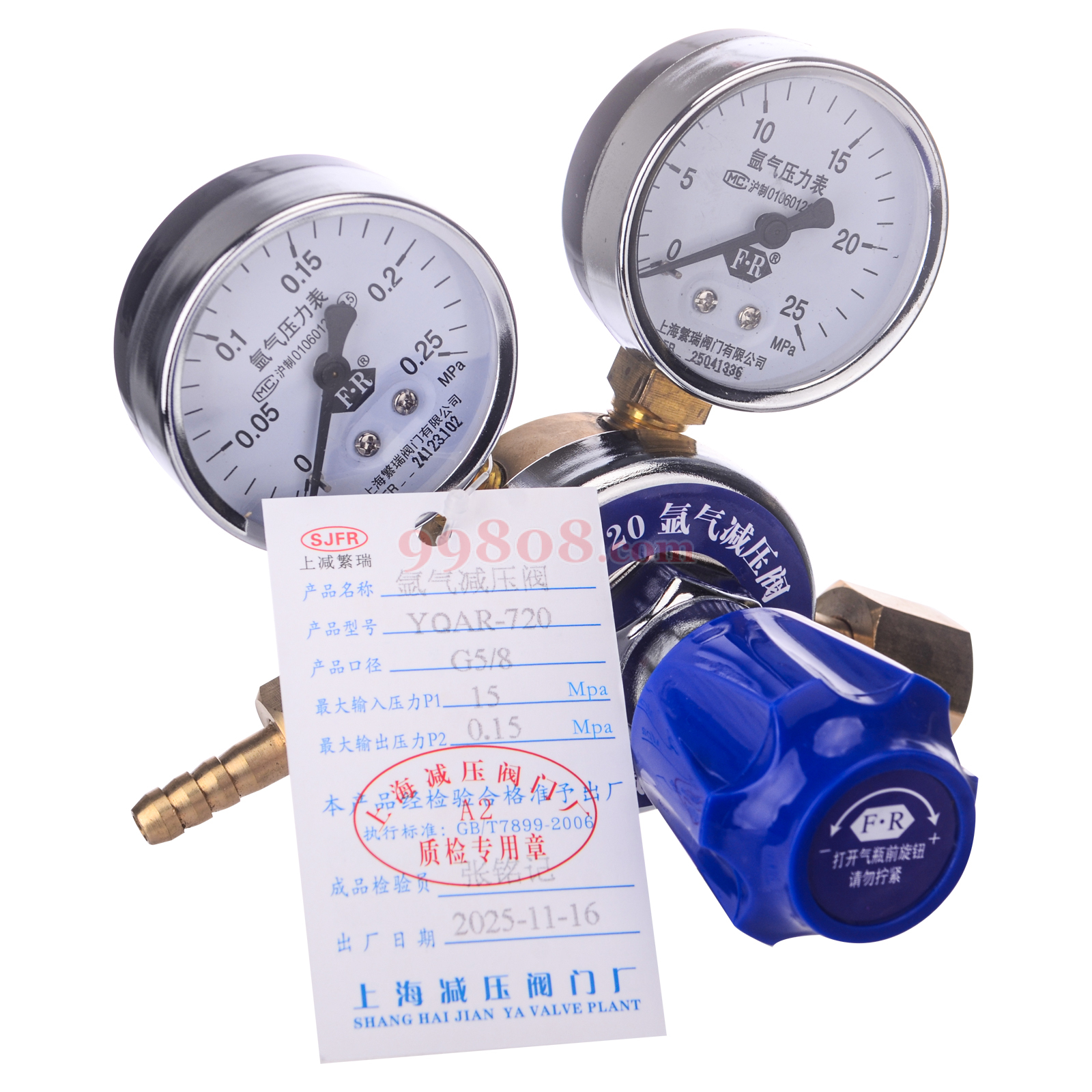 上减/繁瑞 | 氩气减压阀 | 调压范围0.02-0.15MPa;输入0-25MPa;输出表0-0.25MPa