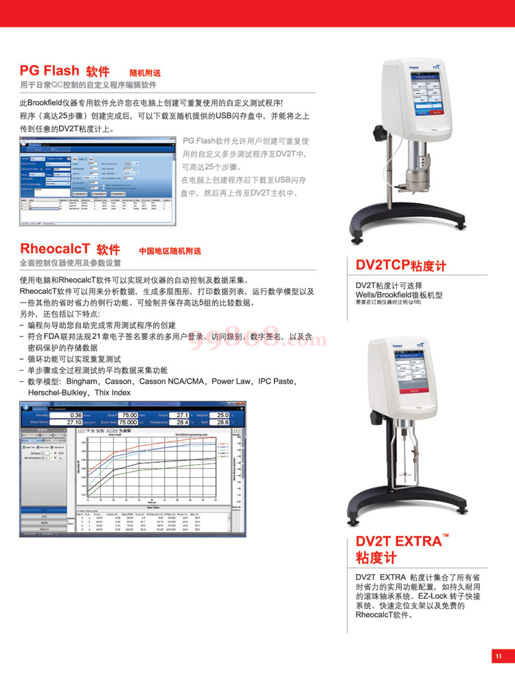 全新的DV2T粘度计是行业较受欢迎应用广泛的一款多功能连续感应粘度计,也是目前测量粘度方面主要推荐的一款型号,配备有5英寸彩色显示屏,指引用户完成创建测试和数据收集的整个过程,以快速便捷地进行粘度测量。DV2T还提供了强大的新编程能力与结果分析,包括数据平均和QC上限下限警报。可选配软件连接电脑进行编程设计,自动控制和数据采集分析。可替代原先的DV-II+,DV-II+P等粘度计。