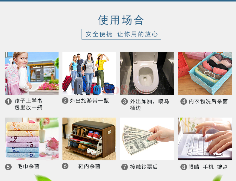 适合随身外出携带,WHO推荐消毒配方,30秒即显消毒效果
