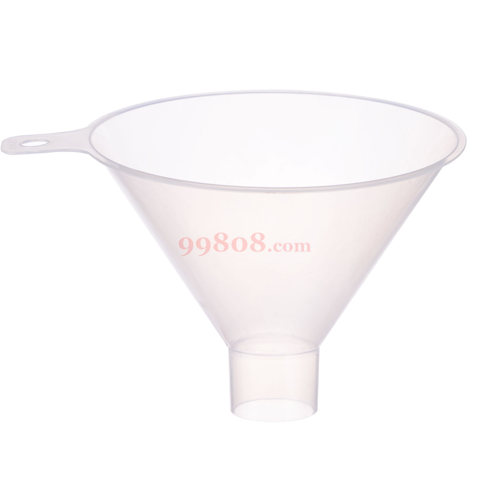 透明,颈短且宽,适用于粉末和颗粒物质的转移。倾斜60°角,流速快;手柄设计,拿取更方便,手柄处有标识。