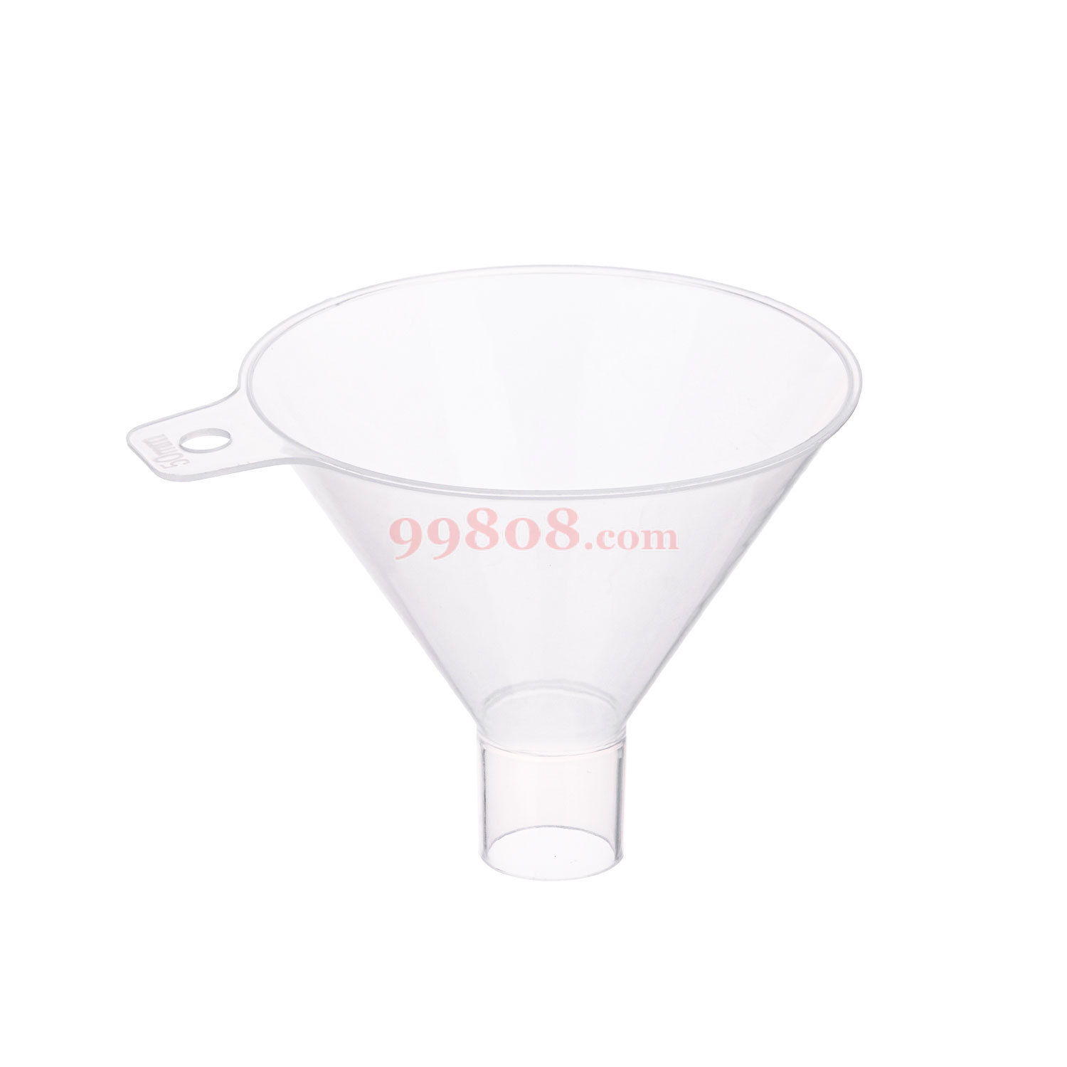 透明,颈短且宽,适用于粉末和颗粒物质的转移。倾斜60°角,流速快;手柄设计,拿取更方便,手柄处有标识。