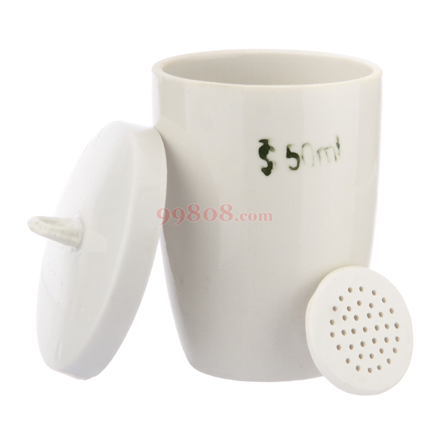 古氏坩埚,它是化学分析中兼作过滤及称重沉淀用的一种坩埚,使用时先将石棉绒均覆盖在坩埚的多孔底上(约1-2毫米厚),盖以多孔瓷板,再在瓷板上均匀覆盖一层石棉绒,烘干至恒重,即可供沉淀过滤和称重之用。
