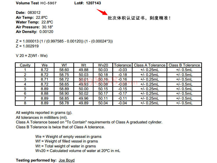 将需清洗的定量瓶放入20%~30%的硝酸中浸泡过夜,取出用自来水清洗,然后用纯水对定量瓶进行二次清洗,晾干,备用。