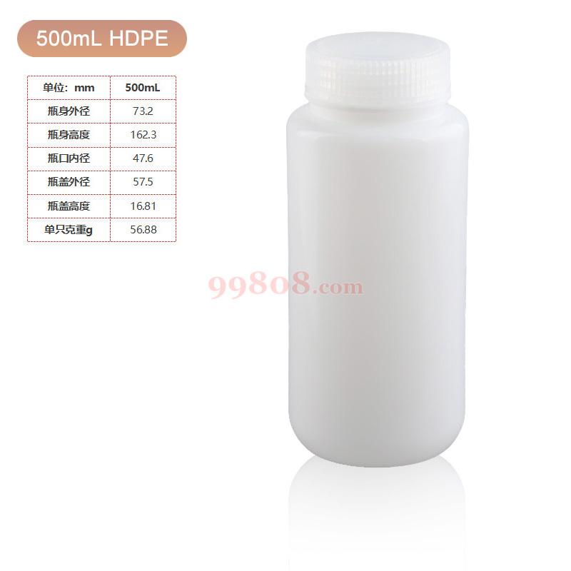 ReLAB | 无酶无热源广口塑料试剂瓶(HDPE) | 本白:500mL非灭菌