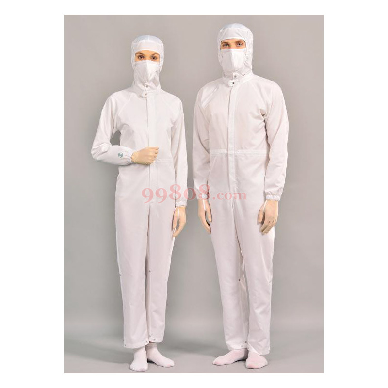 面料:75D 100%超细聚酯长丝+ 0.5网格导电纤维面料 款式:帽衣裤三者相连,前开拉链,袖口拉环固定,脚口平摆+按扣设计 适用级别:B+A无菌区、C级、D级 产品说明:具备洁净性、舒适性、阻隔性、耐湿热灭菌及耐久性,建议灭菌100-150次