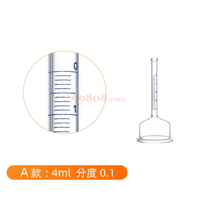 为带刻度的漏斗状玻璃装置,容积(95±5)ml,上部玻璃管带有4ml刻度,Γ小分度值为0.1ml,底盘直径约为65-66mm,经磨砂处理。