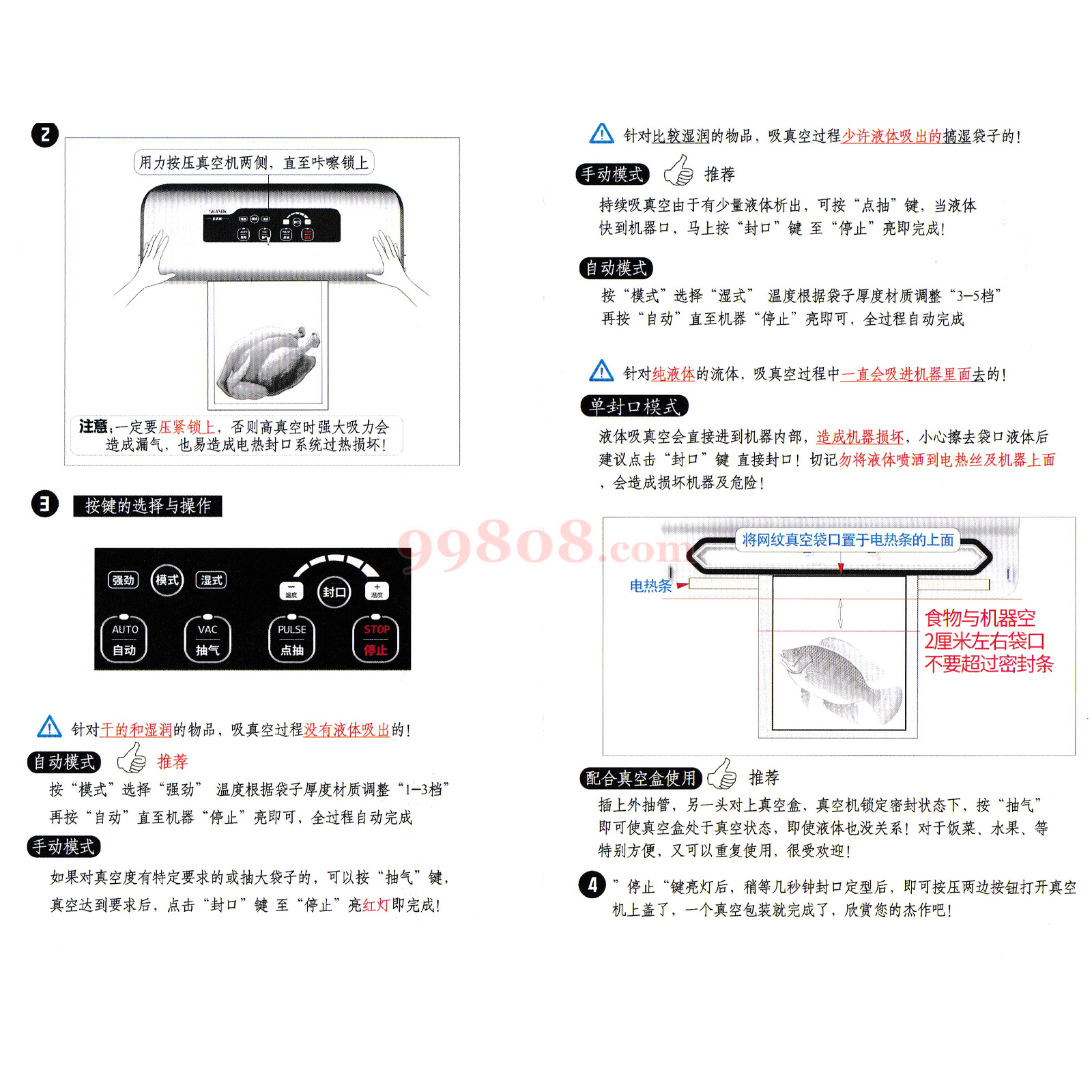 真空封口机是将食品装入包装袋,抽出包装袋内的空气,达到预定真空度后,完成封口工序。