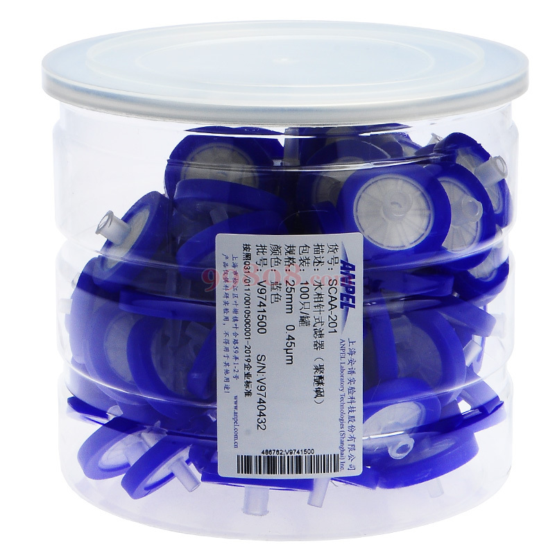Anpel | 针式过滤器 | Ф25/0.45um 水相醚砜PES 蓝色