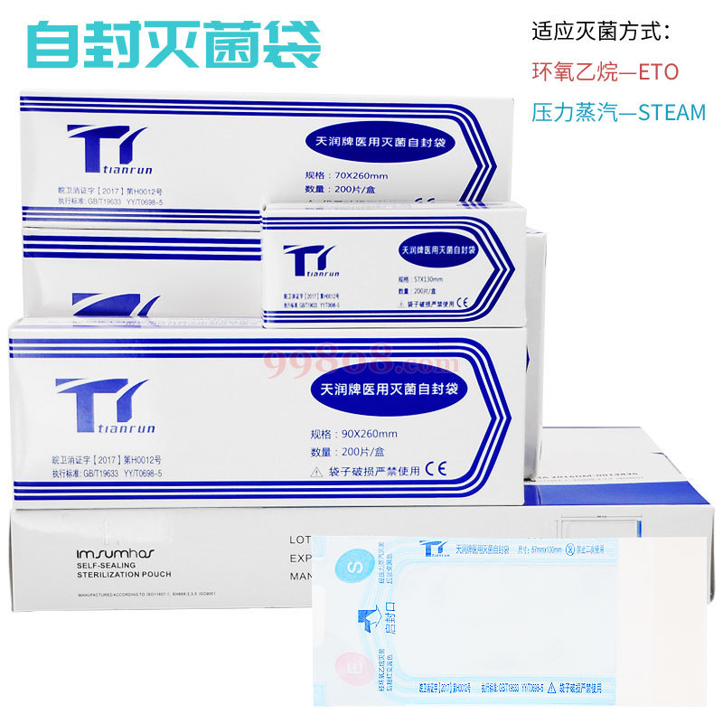 自封式灭菌袋,包装:每箱10盒,每盒200片。