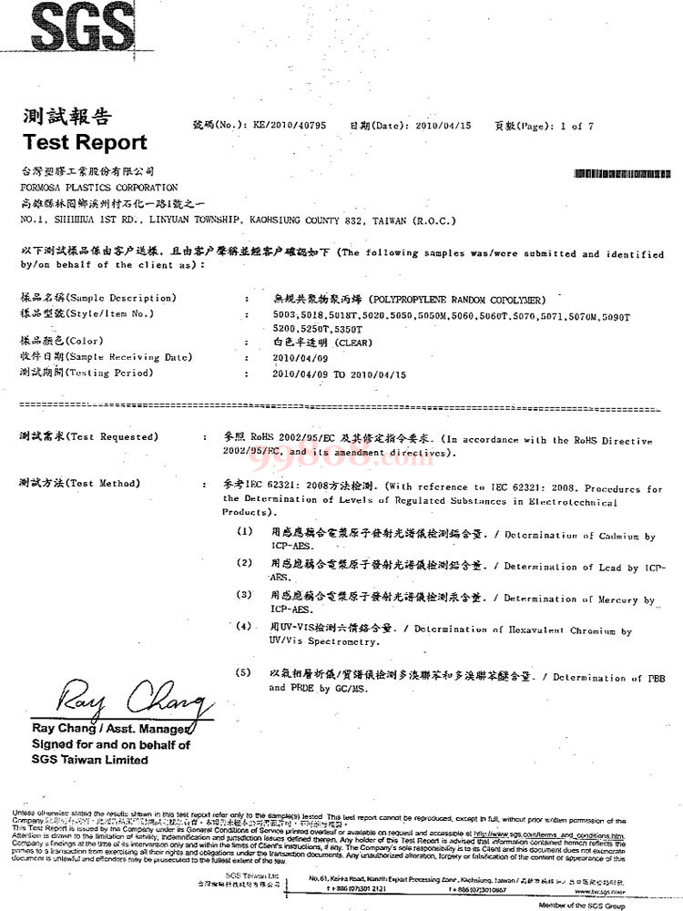 ●  不耐受:能被浓硫酸、浓硝酸侵蚀;低分子量的脂肪烃、芳香烃和氯化烃等能使聚丙烯软化和溶胀。