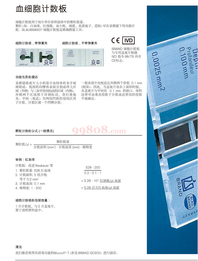 细胞计数板用于统计单位体积液体中的颗粒数量。 颗粒 (如:白血球,红细胞,血小板,细菌,真菌孢子,花粉) 可在显微镜下用肉眼计数。BLAUBRAND? 细胞计数板是精确测量工具。