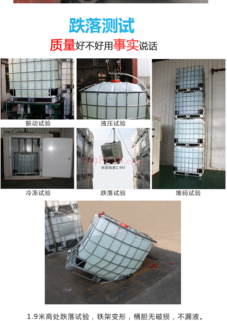 出水接口是75mm; 出口是55mm,外架杆直径18mm 产品名称吨桶IBC集装桶 1特制螺丝固定的钢杆,能很容易很迅速的更换内容器 2内容器采用HDPE,注塑一次成型,抗紫外线,防老化、易清洗、无毒性。 3外框架采用热镀锌钢管焊接成型,底部托盘通过防滑螺钉固定、坚固、耐用、耐腐蚀。 4框架外面的产品标记板,可以标注企业名称,产品及其他需要标注的批示,让客户充分了解您公司的信息。 5底部托盘用优质钢板铸造而成,为四向进叉型。有Γ优的稳定性并方便装卸和堆码。 6内胆上铸...