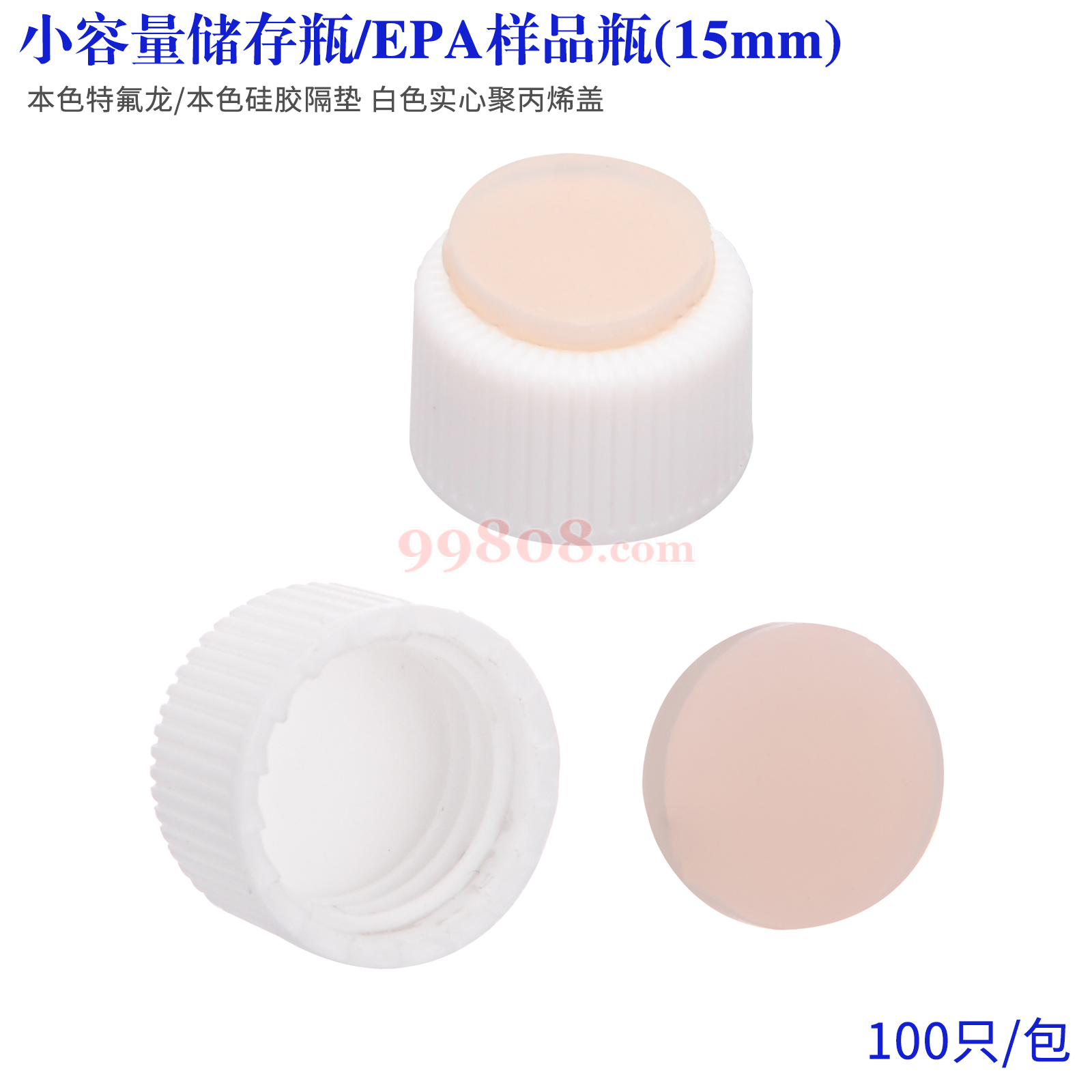 ReLAB | 小容量储存瓶/EPA样品瓶(15mm) | 盖垫组合:本色特氟龙/本色硅胶隔垫 白色实心聚丙烯盖