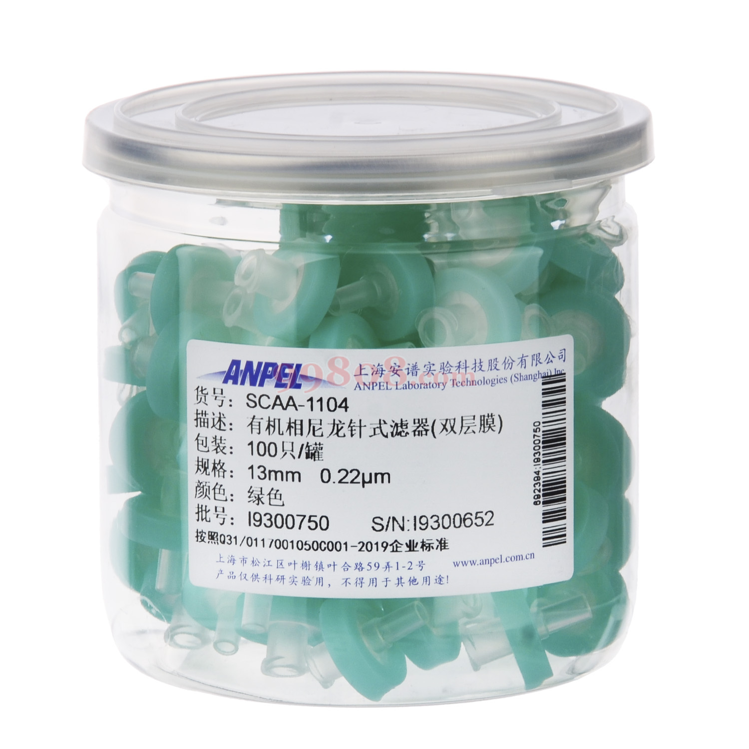 Anpel | 针式过滤器 | Ф13/0.22um 有机相尼龙(绿色,双层膜)