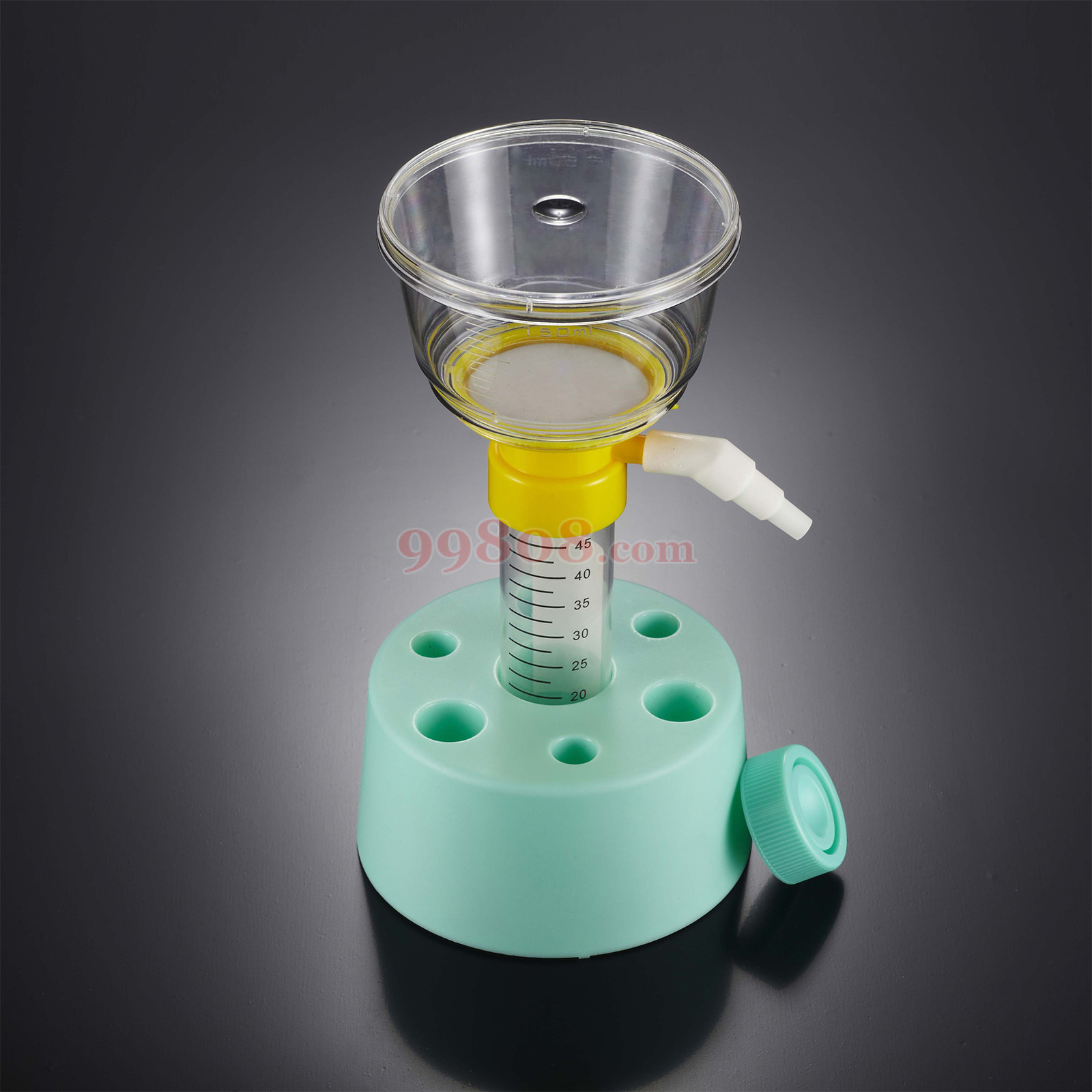 利用真空泵提供压力差,用于组织培养液和其他实验室流体溶液过滤,可直接以无菌的离心管保存,极大地减少了移液过程,提高效率。组合套装包括:真空过滤器上杯、50mL锥形离心管、离心管座及离心管盖。 * 50 mm直径膜,外置抽真空接口直接过滤至50 mL离心管中,减少不必要的移液步骤 * 均配有独立包装的离心管盖,便于储存 * 连结器螺纹牙匹配标准的50mL立式锥形离心管 * 底座可直接固定整套过滤装置 * 组合套装包括:真空过滤器上杯、50 mL锥形离心管、离心管座及离心管盖 * 辐照灭...