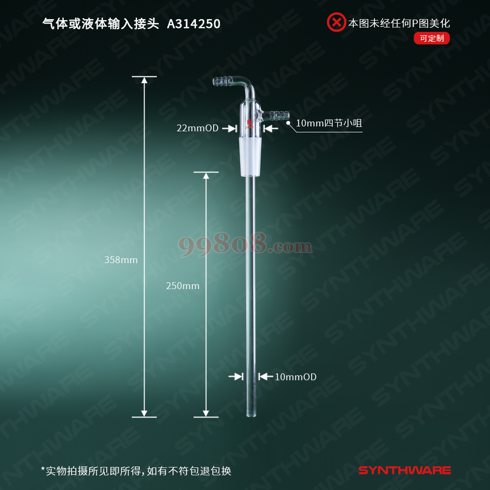 synthware/欣维尔 | 气体或液体输入接头 | 24/40,φ8小咀接口,管长:250mm