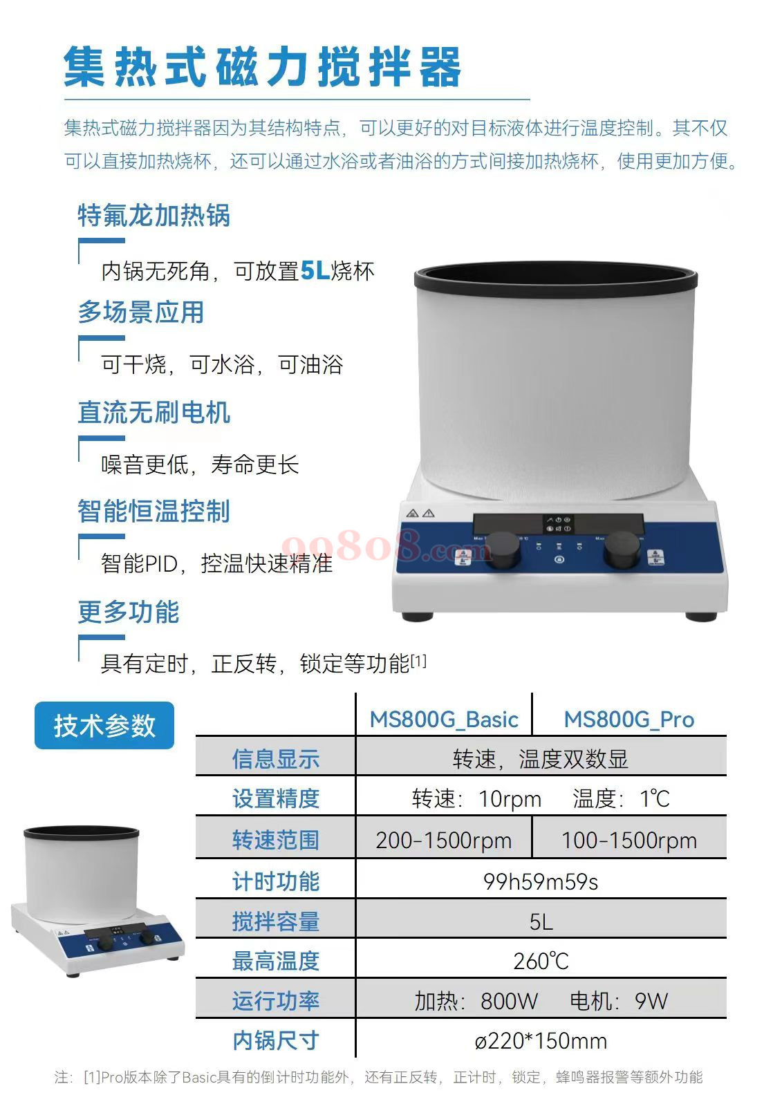 ● 内锅无死角,可放置5L烧杯 ● 可干烧,可水浴,可油浴,可沙浴 ● 噪音更低,寿命更长 ● 智能PID,控温快速精准 ● 具有定时,.正反转,锁定等功能