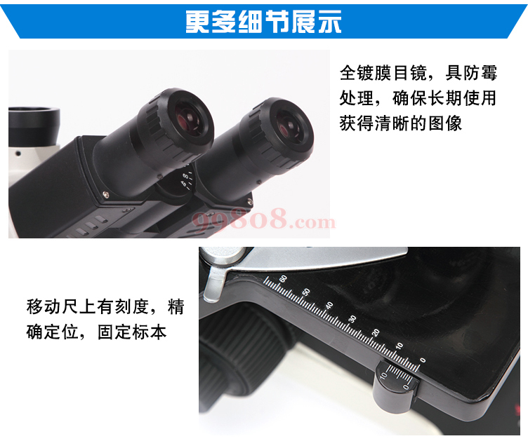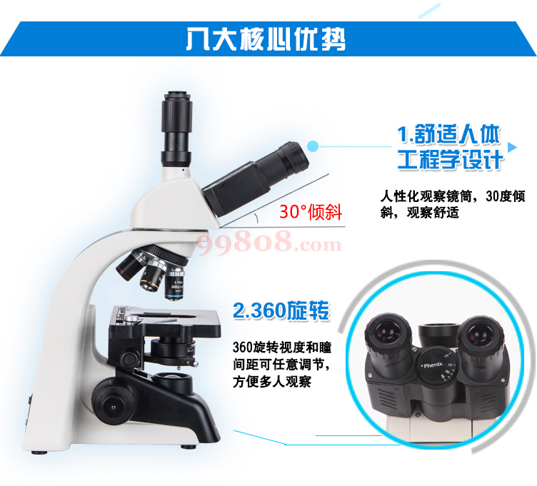 【观察筒镜】:无穷远铰链三目,30°倾斜,瞳间距:55-75mm