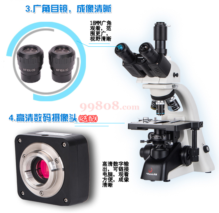 【目 镜】:广角WF10X/φ20mm,WF16X/15mm,视度可调