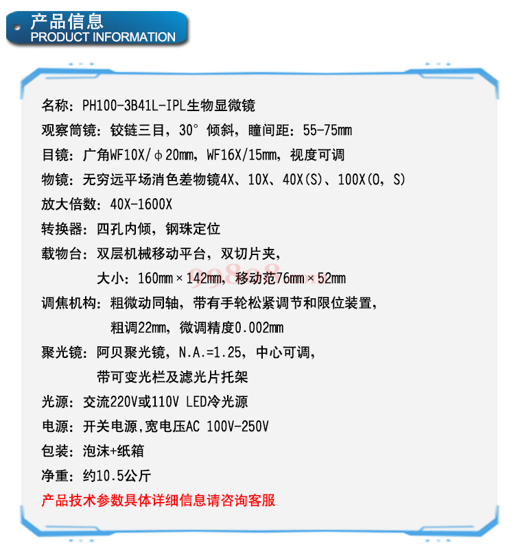 PH100-3B41L-IPL实验室显微镜可供高等院校、医疗卫生、实验室及科研院所等众多单位做生物学、病理学、细菌学等教学研究、临床试验和科研分析所用。
