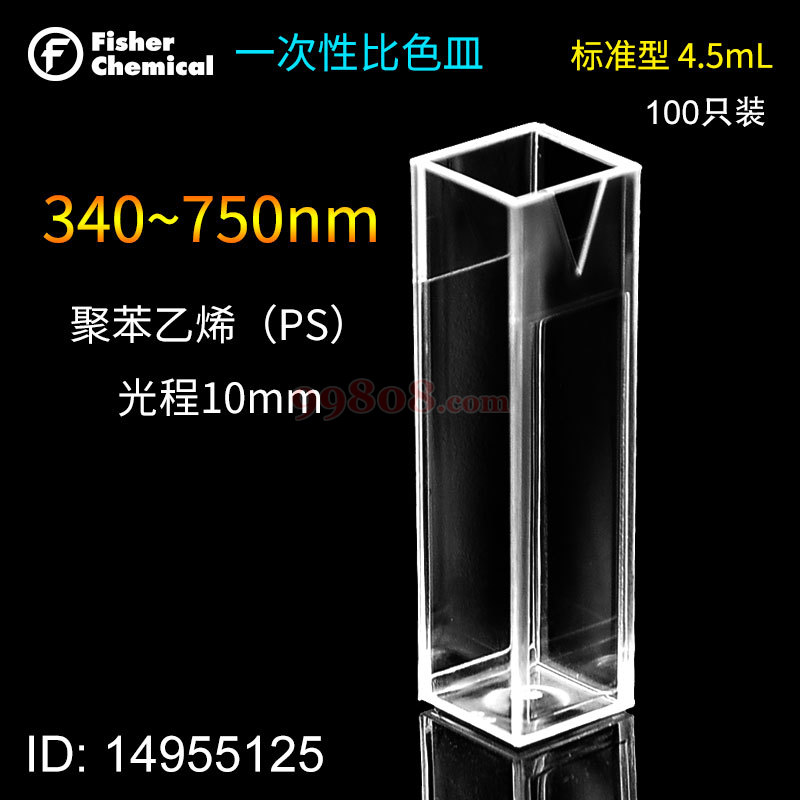 Fisherbrand | 一次性比色皿 | 标准型4.5mL 聚苯乙烯 光程10mm 光谱范围340~750nm