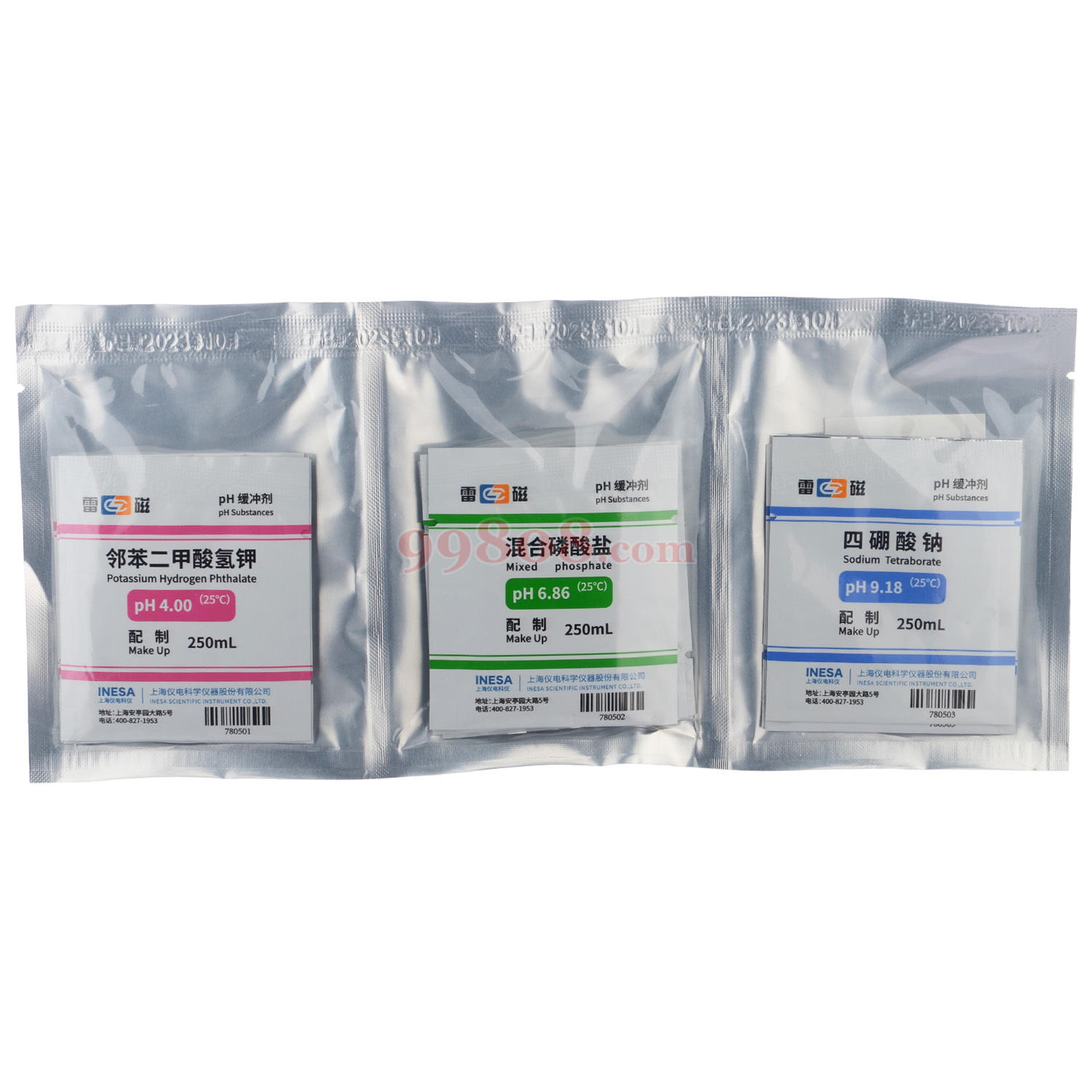 剪开塑料袋,将粉末倒入250ml容量瓶中,以少量无CO2 蒸馏水冲洗塑料袋内壁,并稀释到刻度摇匀备用。