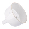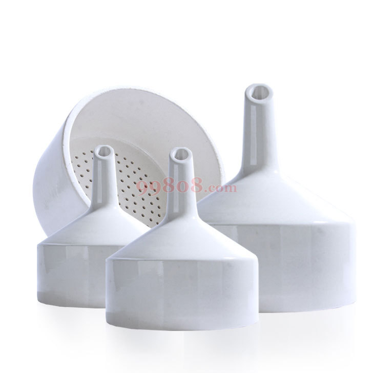 布氏漏斗是实验室中使用的一种陶瓷仪器,用来使用真空或负压力抽吸进行过滤。 形状为扁圆筒状,圆筒底面上开了很多小孔。下连一个狭长的筒状出口。使用的时候,一般先在圆筒底面垫上滤纸,将漏斗插进布氏烧瓶上方开口并将接口密封(例如用橡胶环)。布氏烧杯的侧口连抽气系统。然后将欲分离的固体、液体混合物倒进上方,液体成分在负压力作用下被抽进烧杯,固体留在上方。 常用于有机化学实验中提取结晶。这种情况的过滤完成后,还可以在上方用少量纯溶剂来洗掉结晶表面的杂质。 布氏漏斗的使用 ...